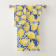 limones cítricos de color amarillo bonito sobre un patrón índigo de azulejos azules y blancos. Fresco y veraniego para alegrar el cuarto de baño. Arte original de Nic Squirrell.