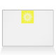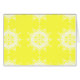 Esta mandala blanca se sienta sobre un fondo amarillo limón. Los colores son alegres y tranquilos. Parte de la colección de Mandala de Fenten.