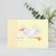 rsvp baby ducha rsvp, amarillo limón, punto de polka con cigüeña voladora