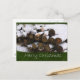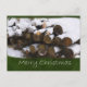 Hermosa escena de invierno de una pila de leña cubierta de nieve lista para un invierno frío y una cálida temporada de vacaciones con un borde verde de pintorescos y el mensaje festivo, Feliz Navidad.