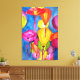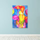 Una colorida pintura acuarela de linternas asiáticas vietnamitas/chinas pintada por el artista visual Sacha Grossel. Estos farolillos coloridos y luminosos de color rosa, violeta y naranja se encuentran en un fondo azul brillante.