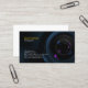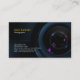 En esta tarjeta de visita para fotógrafos, un cierre de una lente Carl Zeiss forma la imagen principal sobre un fondo oscuro. Personalizar con tu nombre y detalles.