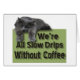 Un gato perezoso se cubrió con las palabras Todos somos Lentos Perros sin Café.