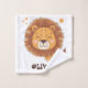 Este paño de lavado personalizado presenta un lindo y caprichoso dibujo de un león sonriente con una cabeza divertida y sobredimensionada.