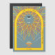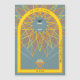 Un León geométrico de la tribu de Judá ruge mientras el niño Jesús en un pesebre levanta sus manos.