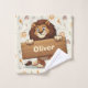 Este divertido paño de lavado personalizado tiene un lindo león con un enorme cartel de nombre de madera.