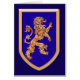 La pintura de Linda Baysinger Peck de un león heráldico de oro, sobre fondo azul azulado del escudo. Excelente para los que disfrutan de las festividades renacentistas y el arte medieval. Imagen © Linda Baysinger Peck Todos los derechos reservados.