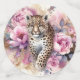 La imagen presenta un ilustracion muy detallado de un joven leopardo rodeado por una variedad de flores vibrantes y florecientes. El leopardo, con su piel de foco y sus ojos expresivos, ocupa un lugar destacado en el centro, creando un punto focal sorprendente. Las flores de los alrededores, predominantemente en tonos rosa y violeta, aportan un toque suave y caprichoso a la composición. El fondo incluye salpicaduras de oro y de colores pastel, lo que realza el ambiente artístico y de ensueño de la imagen. Esta cautivadora mezcla de vida silvestre y elementos florales hace que la imagen sea visualmente atractiva y única, perfecta para productos que buscan evocar una sensación de elegancia y belleza natural.