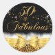 Oro 50 y fabuloso Pegatina de cumpleaños. Elegante flauta arco iris y leopardo impreso. Por favor, tenga en cuenta: ¡Todas las imágenes planas!