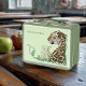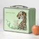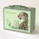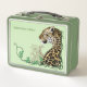 Perfil de un leopardo con henna y vegetación en un entorno verde