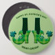 Gracioso botón del Día de San Patricio con zapatos verdes con ropa verde y feliz saludo del Día de San Patricio