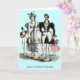 Les Fashionables era un término tomado del inglés y usado en Francia alrededor de 1830 para describir a las víctimas de la moda del día. En esta tarjeta, una familia enmascarada, se muestra como un grupo de muñecas! Esta maravillosa caricatura de una familia francesa de moda se basa en una litografía del siglo XIX de Charles Philipon. Philipon era un ilustrador y empresario y uno de los fundadores del boletín La Silhouette del que proviene esta imagen. La Silhouette fue el primer periódico francés en publicar regularmente impresiones y ilustraciones, dándoles igual o mayor importancia que el texto escrito. El color de fondo se puede personalizar!