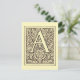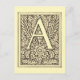 arte vintage con decorativo, y letra ornamentada del alfabeto con la letra a en negrita sobre un fondo de flores de filigrí y hojas con una flor en el centro, deja girando y radiando en formas de helecho ornamentadas con flores entre las hojas. una de las letras del alfabeto sobre un fondo floral en un mundo antiguo, elegante y femenino grabado en tonos beige y marrón.