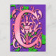 La letra C en una carta elegantemente ornamental. Inmenso color rosa sobre un fondo violeta, con detalles verdes de follaje. Disponible en tarjetas de felicitación, boletines o postales. Sobres incluidos con saludo o carteles (sin sobres con postales), en blanco dentro. ¡Compra más y ahorra.