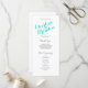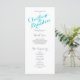 Una hermosa tipografía de escritura turquesa y gris sobre un fondo blanco hace que estos elegantes y modernos programas de boda destaquen. Diseño de Elke Clarke © Personalizar con su color de fondo y toda su información personal a un programa de bodas de lujo que sus asistentes pueden entregar cuando sus invitados entran a la iglesia o están sentados donde tendrá lugar la ceremonia. Ayuda a la gente a seguir durante la ceremonia, pero también actúa como un gran placer para los invitados. Puede utilizar los campos de la plantilla para rellenar la información sugerida sobre su fiesta de boda y el orden de servicio y agradecerle el mensaje o seleccionar "personalizar" y usar el menú de edición para cambiar el espaciado del texto, las fuentes, los colores a medida que desee crear sus propios programas de boda.