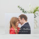 Nombres de novias y novios en un hermoso tipo de letra de guión - Simple Modern Guardar la tarjeta fotográfica de fecha con tu foto en la parte delantera y trasera. Elke Clarke© Romántico, moderno diseño de escritura blanca de tipografía de diseño superpuesto ahorra las invitaciones de compromiso de fecha que puedes personalizar. Para más estilo visite nuestra tienda en www.zazzle.com/monogramgallery.