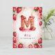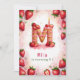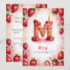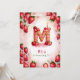 Celebra un cumpleaños especial con esta deliciosa carta de fresa "M", ¡invitación a torta! Este encantador diseño acuático cuenta con una tarta divertida y festiva en forma de letra "M", decorada con fresas frescas, hielo rosa y una vela de cumpleaños brillante. El suave fondo rosa con fresas dispersas aporta un toque divertido. Personalice con el nombre, edad y detalles del fiesta de su hijo para una celebración de cumpleaños con temática de fresa única. Perfecto para los más pequeños que aman a los fiestas de la fruta o los cumpleaños del verano.