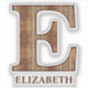 Letra E con textura rústica de cartón de madera envejecida. Personalizar con su nombre o mensaje en letras marrones coincidentes.