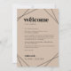 Estas modernas cartas de bienvenida y tarjetas itinerarias geométricas de boda son perfectas para un boda sencillo. El diseño clásico presenta formas geométricas bohemias de diamante y triángulo y una tipografía rústica de boho con un toque industrial moderno de moda. La parte delantera de la tarjeta incluye una carta de bienvenida y la parte trasera de la tarjeta incluye el itinerario del boda. Estas notas son perfectas para bodas de destino y bolsos de bienvenida para huéspedes del hotel.