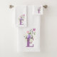 El diseño presenta Monograma más Flores en un diseño floral. Inicial es la letra E. Set de toallas personales.