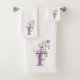 El diseño presenta Monograma más Flores en un diseño floral. Inicial es la letra F. Toalla personal.