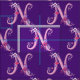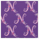 Dibujo inicial N bonito convertido en letra gráfica en tonos violeta y rosa sobre un fondo morado oscuro. El color de fondo puede cambiarse a su propia elección de color si es necesario. Personalizada con su propia inicial, esta tela lee N, ideal para proyectos de costura personalizados. Hay otras cartas disponibles. © Dibujo y diseño originales de Sarah Trett. www.sarahtrett.com para www.mylittleeden.com