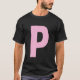 Letra P grande y negrita en camiseta rosa