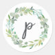 Utilice este diseño de aspecto limpio con una corona de vegetación de eucalipto y una letra monograma P para varias ocasiones: bolsos, sellos para sobres, etc.