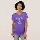 La elegante camiseta púrpura del profesor con paisajes azul bonito, blanco, rosa y violeta texto gráfico de una letra grande que dice el texto T. White personalizado es para el profesor, y se puede cambiar para leer lo que se desea o borrar. Qué gran idea de regalo para el profesor.