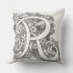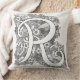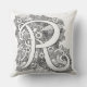 Letra monograma R almohada dibujada a mano. Ideal para colorear, bordar o simplemente conservarse como un esquema de diseño mono-letra R. El color de fondo se puede cambiar si se requiere el blanco actual. © Dibujo original con tinta, artículos que comienzan con R rosas, arco iris, conejos, cohetes y frambuesas, arte y diseño de cartas de Sarah Trett. www.sarahtrett.com para www.mylittleeden.com