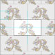 Dibujo gráfico de la mano de la letra R bonito en gris con tonos amarillos, púrpura, rosa y blanco sobre un fondo blanco. El color de fondo puede cambiarse a su propia elección de color si es necesario. Personalizado con su propia R inicial, ideal para proyectos de costura personalizados. © Dibujo y diseño originales de Sarah Trett. www.sarahtrett.com para www.mylittleeden.com