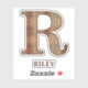 Letra R con textura rústica de cartón de madera envejecida. Personalizar con su nombre o mensaje en letras marrones coincidentes.
