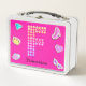 ¿Estás buscando una caja de almuerzo de color rosa caliente de vuelta a la escuela? ¡Mira nuestra Carta Rosa Caliente de Monograma Girly de vuelta a la escuela Metalizado caja de almuerzo! Esta hermosa caja de almuerzo giratorio tiene un fondo rosado caliente, la letra F con un efecto diamante digital, una corona, un espectáculo de chicas, gafas de sol, corazones y un diamante. Puedes personalizar el nombre.