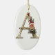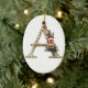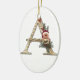 Recuerdos maravillosos de la familia de la captura oval del ornamento con un ornamento de cerámica personalizado. Añada sus fotos preferidas, imágenes y mensaje personal a ambos lados de este ornamento. Un filamento del hilo del oro hace fácil exhibir este recuerdo fantástico.