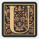 Esta simple letra "U" está enmarcada con un motivo floral dorado y negro muy bonito.