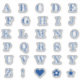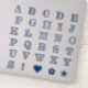 Paquete de pegatina de letras monográficas de tipografía azul real para monogramar, personalizar, personalizar, escribir notas, revistas, libretas y más. Este conjunto también incluye un punto de exclamación, corazón, flor y estrella.