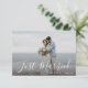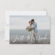 recién casados con encantador texto con letras blancas. La imagen de la novia y del novio y el color y el texto de la espalda pueden ser personalizados.