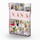 Magnífico regalo fotográfico para tu nana. El diseño incluye letras florales para "nana", que se imprimen en oro y están decoradas con flores de lirio rosa. La plantilla de fotos está configurada para que añadas 12 de tus fotos favoritas, todas las cuales se muestran en formato vertical. Este collage de fotos de estilo de cuadrícula se sienta en un color de fondo rosado, que puede editar en cualquier color de su elección (haga clic en "personalizar más adelante").