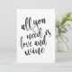 Un elegante letrero de boda de vanguardia, presenta el texto "Todo lo que necesitas es amor y vino" en una fuente de escritura extrovertida, la textura de la brocha añade un sentimiento espontáneo y juguetón. El color de fondo se puede personalizar según tus necesidades y preferencias, por favor contactame si tienes alguna solicitud especial.