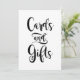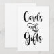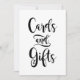 Dirija a los invitados a la mesa de regalos con este llamativo letrero de "Tarjetas y Regalos" en un script de pincelada expresiva y negrita. La llamativa letra negra sobre blanco crea una pieza de declaración limpia y moderna que combina sin esfuerzo con cualquier estilo de boda o paleta de colores. Una adición simple pero impactante a la decoración de su recepción. Todo el texto es totalmente personalizable.