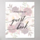 Este letrero de libro de visitas de caligrafía elegante floral desvanecida es perfecto para una boda de otoño. El diseño presenta tipografía romántica y caprichosa superpuesta a un hermoso ramo de flores rosadas, marsala y borgoña desvanecidas.