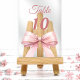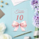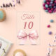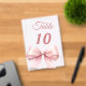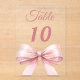 Personaliza y numera tus mesas una por una. Un fondo transparente decorado con un lazo grande de color rosa.