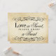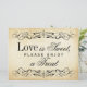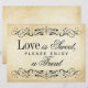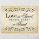 Agregue un encanto antiguo a su postre o mesa de favores con este letrero de pergamino antiguo labor ornamentada "El Amor es Dulce, Por Favor Disfrute un Regalo". Bordes ornamentados de filigrana en marco negro enmarcan el texto en un fondo de pergamino envejecido cálido para una apariencia rústica pero refinada. Coordina con el conjunto completo de papelería de labor ornamentada en la gama de colores de pergamino. Todo el texto es totalmente personalizable.