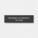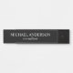 Haz que tu negocio parezca más profesional con un elegante cartel de puerta. Este signo de puerta muestra el nombre en el estilo de fuente serif profesional blanco y el título en el estilo de tipo de letra de guión blanco en el fondo negro. Perfecto para un agente inmobiliario, consultor, contable y muchas otras profesiones.