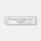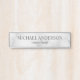 Haz que tu negocio parezca más profesional con un elegante cartel de puerta. Este signo de puerta muestra el nombre en el estilo de fuente serif profesional gris y el título en el estilo de fuente de escritura gris sobre fondo de mármol blanco. Perfecto para un agente inmobiliario, consultor, contable y muchas otras profesiones.