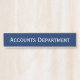 Custom, personalized, modern, classy, stylish, professional, elegant, business office room silver color finish classic navy blue and white script / typography, wall or door hanging metal sign long size name plate. To customize, simply type in the department / room name. While you personalize, you'll be able to see a preview throughout. Perfect for corporations, small business, company corporate office, department door signs, consultants, entrepreneurs, business owners, school teacher name plate, director manager ceo name plates, conference exam room name plate, police office, firms, clinics, and more.
