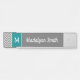 Una señal de puerta personalizada con un área para un nombre y un monograma - o número de puerta. Patrón geométrico de moda con un área para monogramas.
