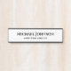 Mostrar profesionalismo con este cartel personalizado de la puerta de la oficina que muestra su nombre y el título de su trabajo. El nítido marco negro rodea un fondo blanco limpio con elegantes fuentes serif, lo que lo hace perfecto para directores, ejecutivos y jefes de equipo. Ideal para identificar oficinas, escritorios o salas de reuniones en cualquier entorno de negocios. Elija la opción de estilo, tamaño, acabado metalizado y colgante del menú de opciones.