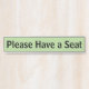 Este diseño básico incluye el mensaje "Please Have a Seat". Esto se podría utilizar en una recepción o en una sala de espera para informar a los visitantes, clientes o pacientes de que recibirán ayuda en breve y de que, entretanto, deberán tomar asiento.