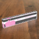 Un letrero para el escritorio del profesor que ofrece un ilustracion de una manzana rosada en la izquierda sobre un fondo rayado blanco y negro. Personalice con su nombre.